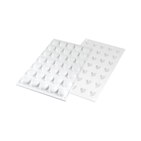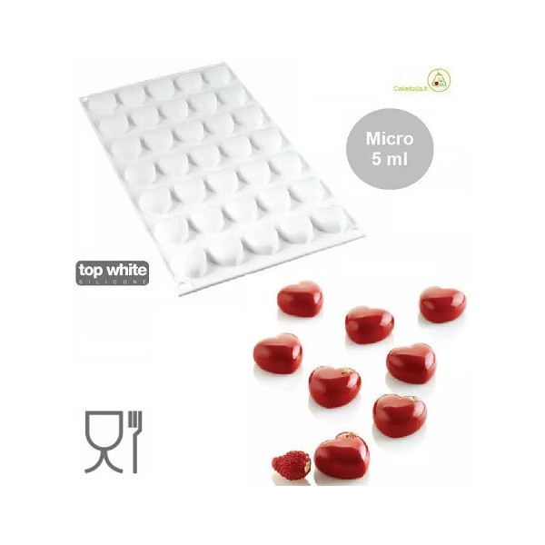 Micro Love 5 o Cuoricini 5 ml: stampo in silicone, per semifreddi e preparazioni forno per 35 micro dolcetti di diametro 2,2 cm a forma cuore, della linea Top White ad effetto 3D di Silikomart