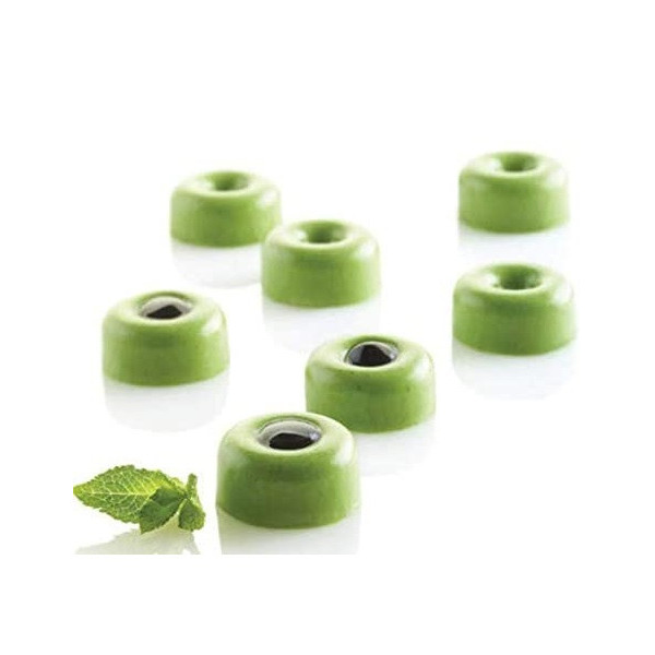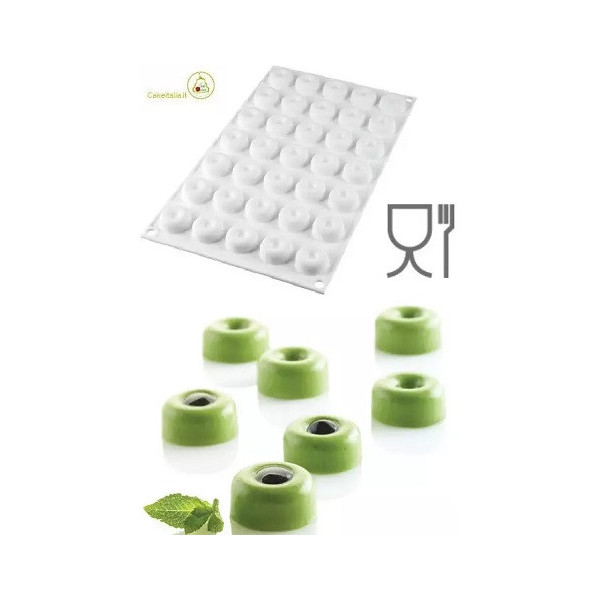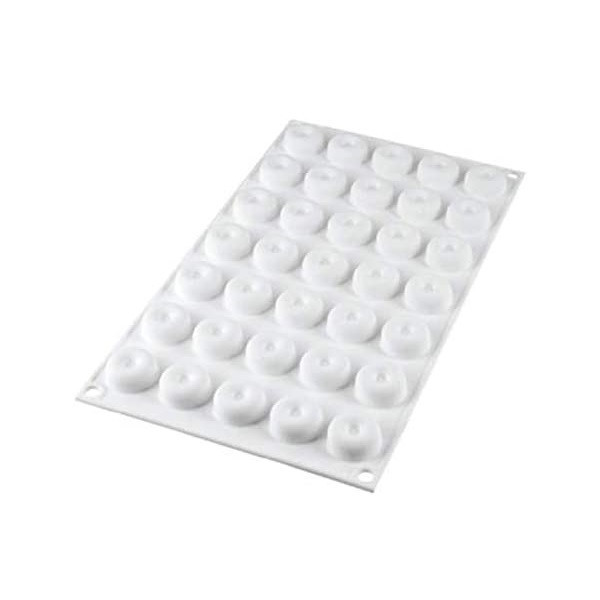 Stampo in Silicone Micro Savarin o Micro Ciambella è uno Stampo in Silicone, per semifreddi e preparazioni forno per 32 dolci semisfere di diametro 26 mm, altezza 12 mm, linea Top White di Silikomart.