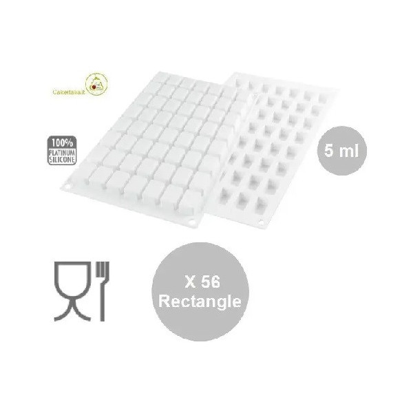 in generale per 56 dolci rettangoli, lunghezza 2,6 cm, larghezza 1,6 cm ed altezza 13 mm, linea Top White di Silikomart.