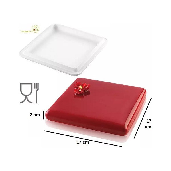 Decor Square 560, stampo quadrato in silicone bianco Top White di 17 cm, altezza 2 cm, volume 560 ml di Silikomart. Ideale come decoro, come inserto e per torta, per semifreddi, mousse e versioni cotte a forma quadrata.
