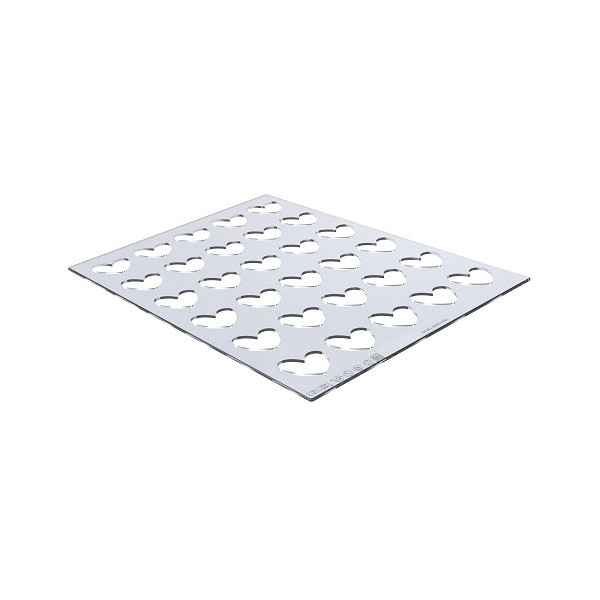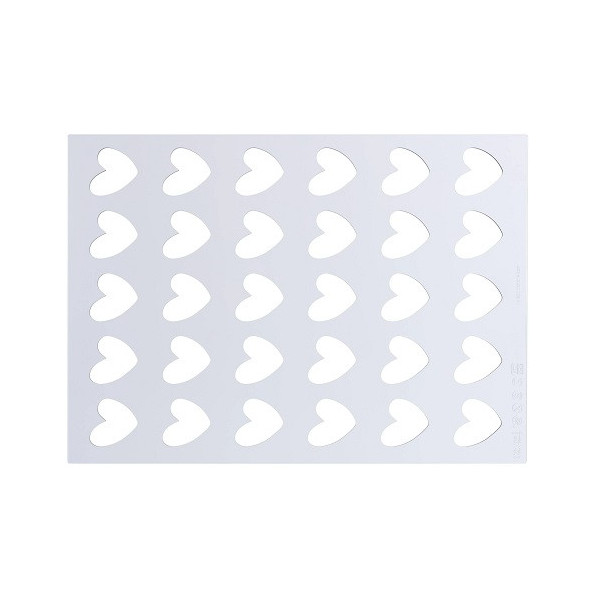 Chablon Heart Silikomart: 2 stampi chablon cuori per realizzare 60 Chablon a forma di cuore da 3,1 cm. Stampi professionali in silicone per decorazioni di cioccolato, caramello o isomalto.