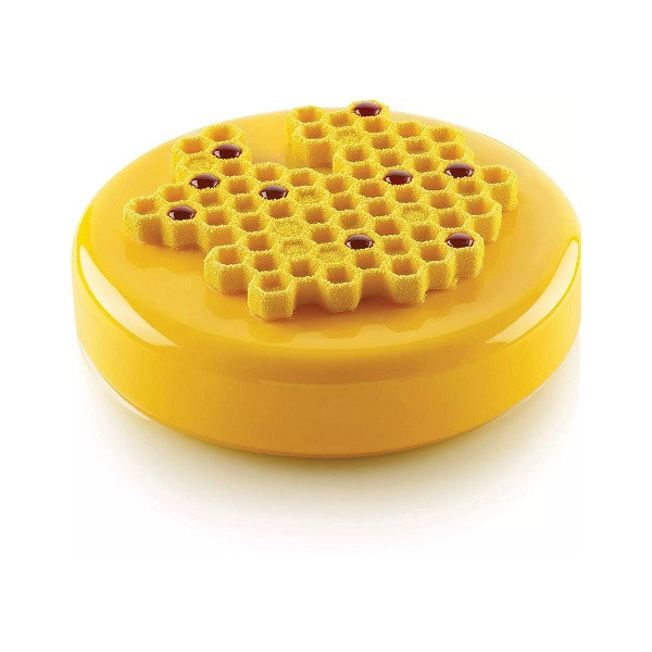 Tuti gli stampi Miel sono stampi per decorare mini porzioni, monoporzioni e torte, in silicone bianco della linea Top White con cavità tonde per decori o texture a forma di alveoli esagonali di per mousse o cremosi.