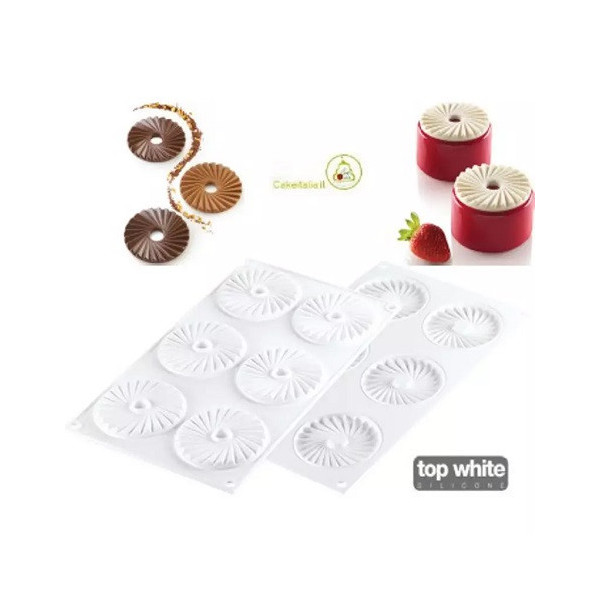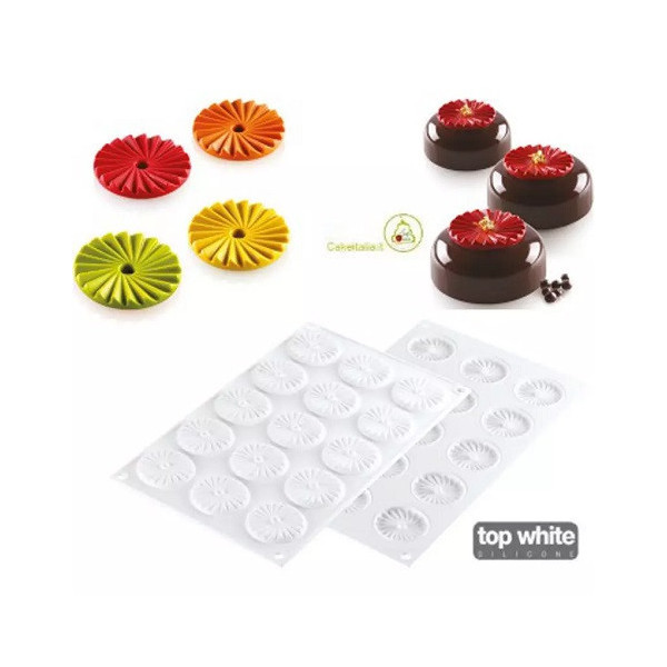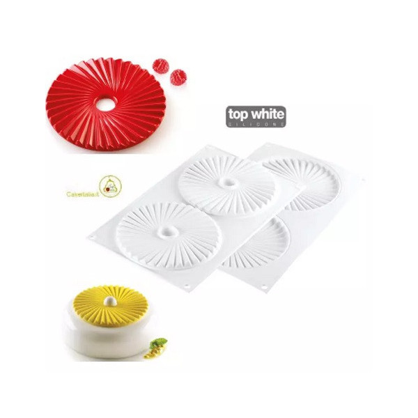 Kit Plissé Silikomart: set 3 stampi in silicone bianco per decorazioni a tema plissé, ideali topper per semifreddi, sia torte sia dolci mono o mini porzioni.