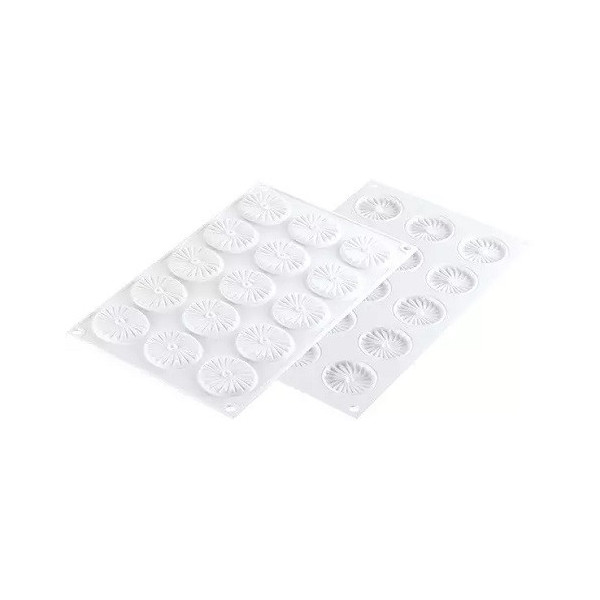 Mini fiorentine Silikomart: stampo in silicone per 24 florentins, cioccolatini o piccoli dolci decorativi o mini porzioni a forma di dischetti mignon, di diametro 35 x h 5 mm da Silikomart