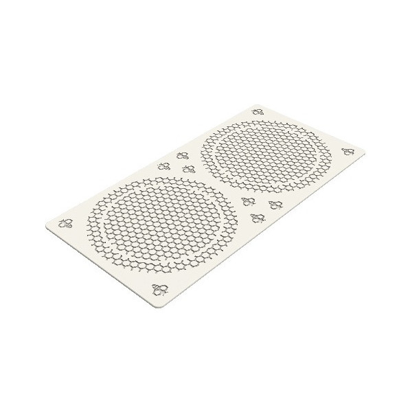Alvéolé 9 Silikomart: tappetino decorativo in silicone professionale per decori tondi da 14 cm a trama con celle esagonali tipico dell'alveare + decoro fascia larga 4 cm + 10 decori ape.