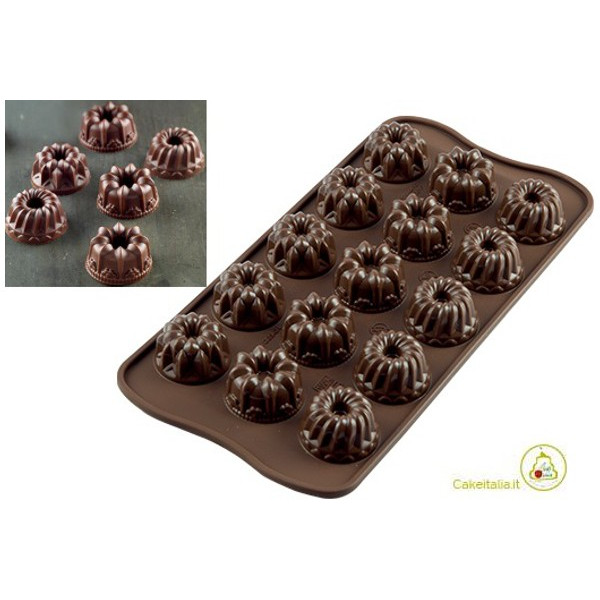 Stampo in silicone per 15 cioccolatini Mini Gugelhopf o Fantasia Silikomart.
