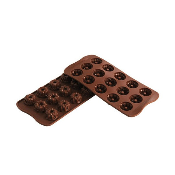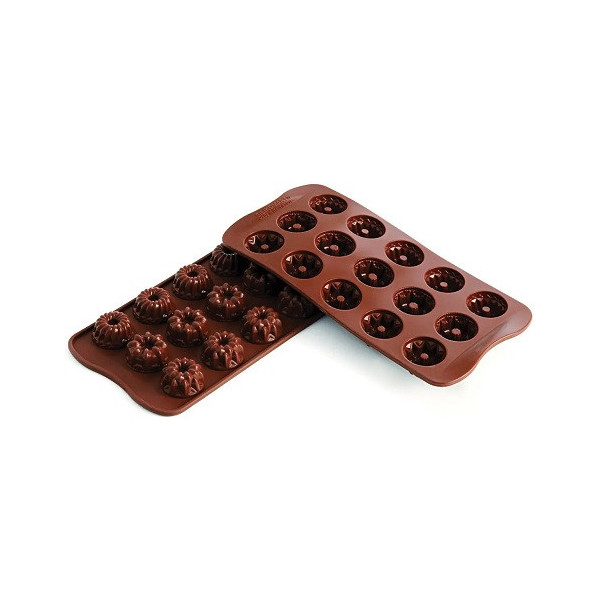 Stampo cioccolatini Mini Gugelhopf o Fantasia, SCG19 da Silikomart. Stampo in silicone marrone per 15 cioccolatini Mini Gugelhopf o Fantasia.