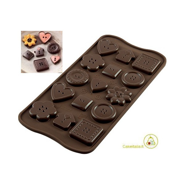 Stampo in silicone per 15 cioccolatini Bottoni da Silikomart.