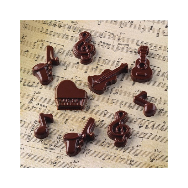 Forme Cioccolatini: Chitarre, violini, sassofoni, note musicali, chiave di violino, pianoforti