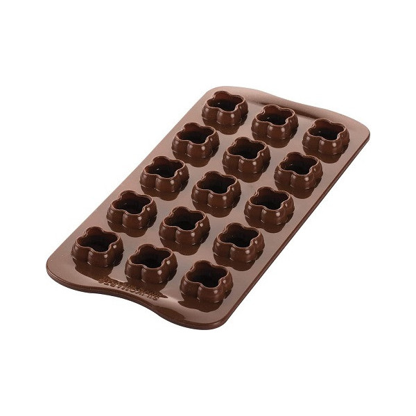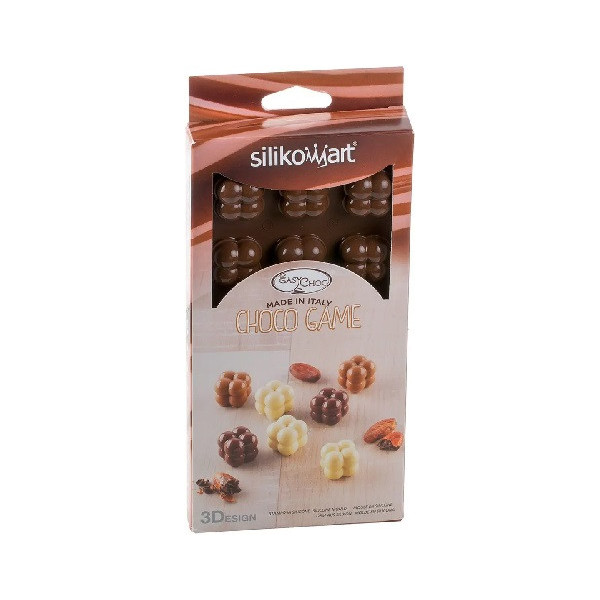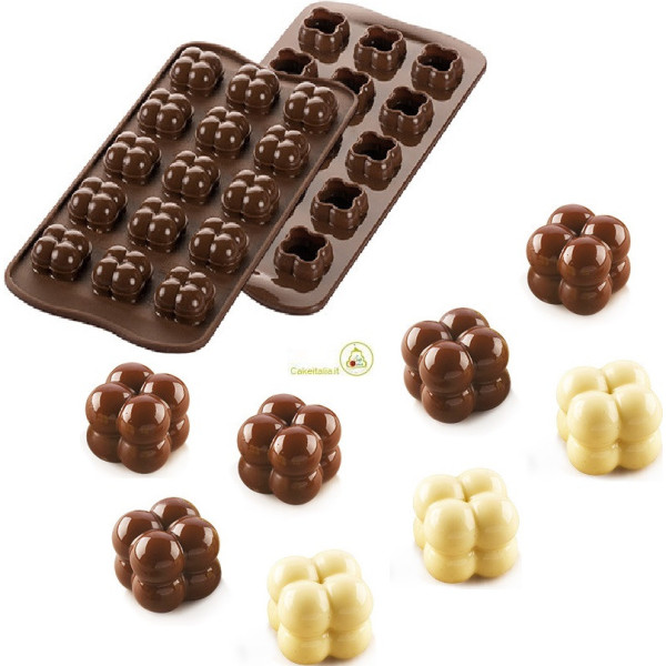 Stampo Choco Game 3D SCG51 Silikomart: stampo in silicone 100% platinico colore marrone, per 15 cioccolatini a forma di cubetti di sfere tridimensionali o Choco Game 3D
