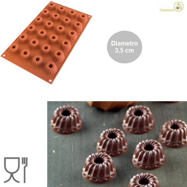Mini Gugelhopf SF232 da Silikomart: stampo in silicone per 24 mini gugelhopf, classici monoporzione a ciambella mini in silicone di diametro 3,5 cm ed alti 2 cm