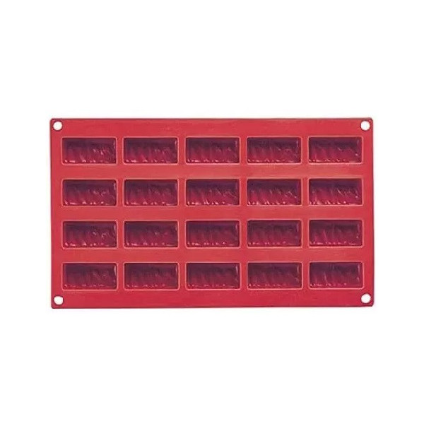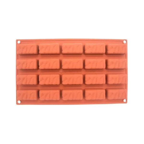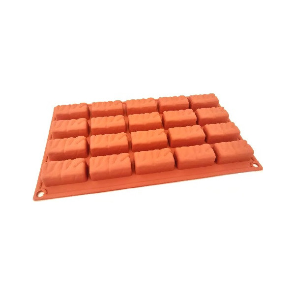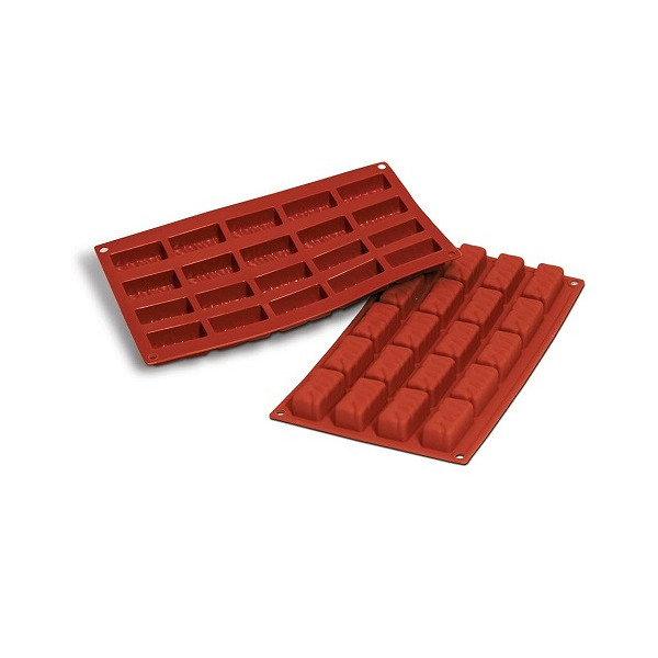 Stampo per classiche piccole barrette, monoporzioni rettangolari in silicone, lunghe 50 mm, larghe 25 mm ed alte 20 mm.