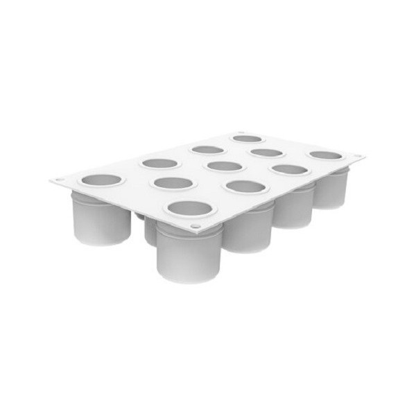 Stampo Cilindri 3D 100 ml: 11 cilindri in silicone bianco da Silikomart per monoporzioni o tortine a forma cilindro con effetto tridimensionale dal diametro di 5 cm ed altezza 5,5 cm