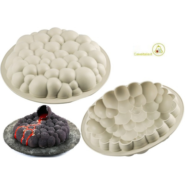 Lo Stampo Bolle è uno stampo in Silicone grigio da Silikomart per Tortiere a forma di bolle con effetto tridimensionale dal diametro di 22 cm ed altezza 5,5 cm
