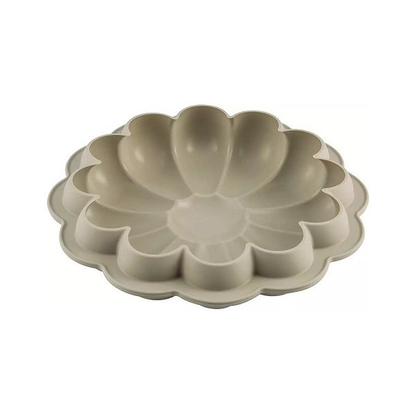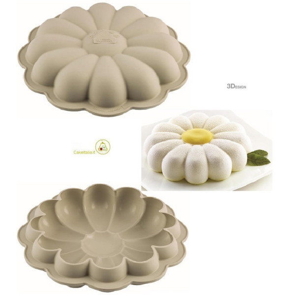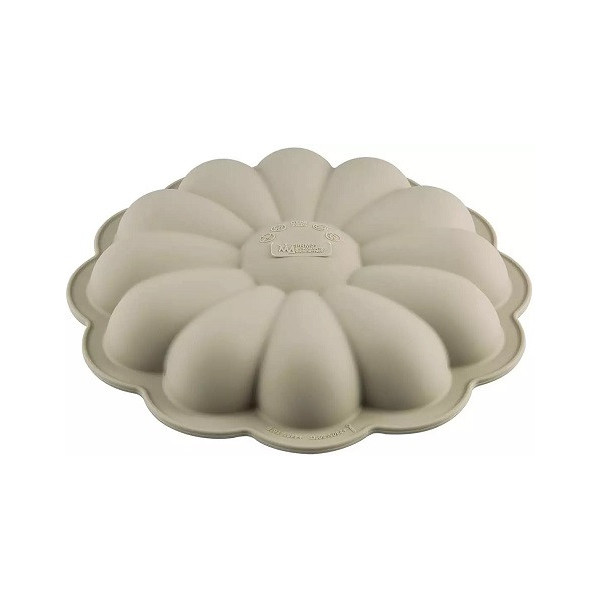Lo stampo Primavera è uno stampo in silicone grigio da Silikomart per torte a forma di fiore sagomata di petali con effetto tridimensionale dal diametro di 22 cm ed altezza 5 cm