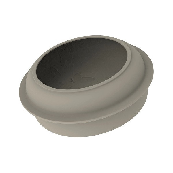 Stampo in silicone grigio per torte tonde con trama farfalle, sinuosa, arrotondata alla base, con effetto tridimensionale, dal diametro di 18 cm ed altezza 6,4 cm.