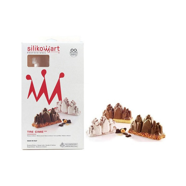 Tre cime 650 Silikomart, stampo in silicone che permette di creare delle preparazioni, che richiamano la maestosità del panorama dolomitico, certamente sapranno sedurre con il fascino dello scenario montano.