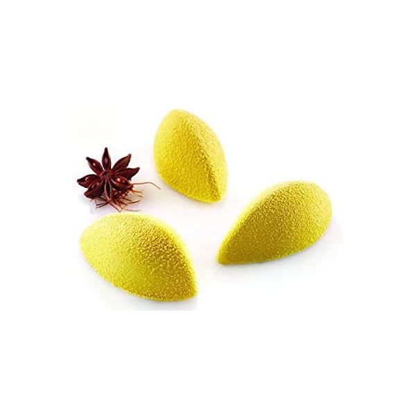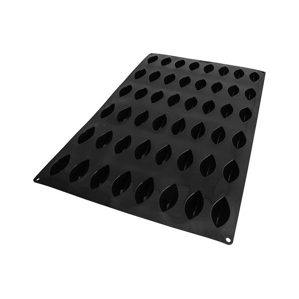 Stampo Sessantaquaranta per 48 quenelle 3D, SQ071, in silicone liquido al 100 %, flessibile e antiaderente, per uso professionale, colore nero da Silikomart. Ogni cavità è: lunga 63 mm, larga 31 mm ea alta 28 mm. La teglia 60x40 può essere messa direttamente dal forno al frigorifero e viceversa.