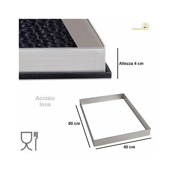 Cornice Sessantaquaranta in acciaio inox 18-10 (AISI304) lunga 60 cm, larga 40 cm e alta 4 cm da Silikomart per cotture a forno e preparazioni a freddo da Silikomart