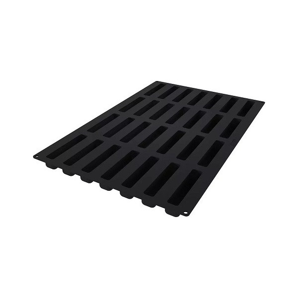 Stampo per 28 Strisce Eclair lunghe 13 cm, larghe 2,8 cm ed alte 2,8 cm e volume 9,5 cl in silicone nero, teglia lunga 60 cm e larga 40 cm ideale per forni professionali, adatta ad uso intensivo.