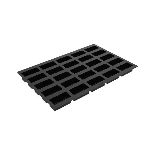 Stampo Sessantaquaranta Righe Silikomart: per 25 mini cake rigate o mini tortine rigate lunghe 10 cm, larghe 4,8 cm ed alte 4 cm in 100% silicone platinico, flessibile e antiaderente, SQ085 da Silikomart
