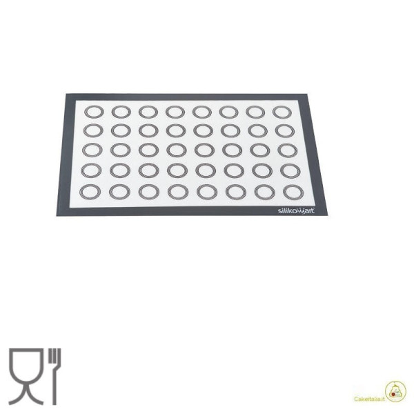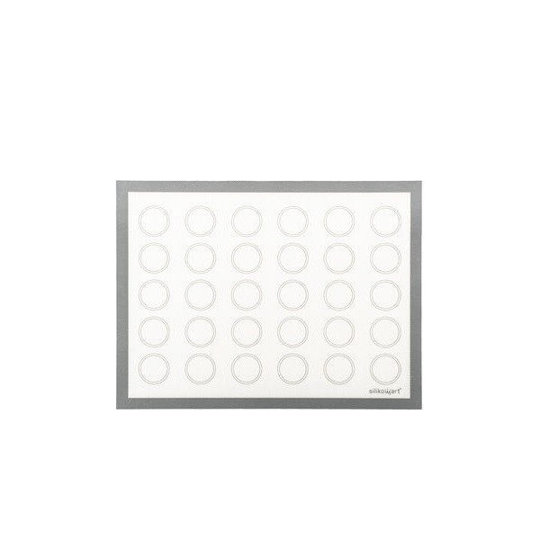 Macaron Fiberglass with Circles 30x40 o 60x40 cm da Silikomart: tappeto antiaderente, in fibra di vetro con cechi, ideale sia per lavorazioni che per utilizzo in forno, di macarons e biscotti.