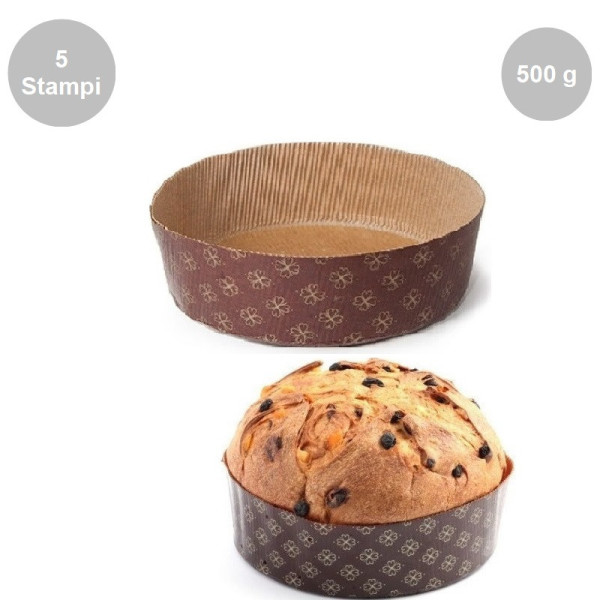 Set spillone a punte in acciaio con 5 stampi panettoni artigianali bassi, stampi canasta o stampi panettoni gastronomici in carta cellulosa usa e getta o monouso da 500 g