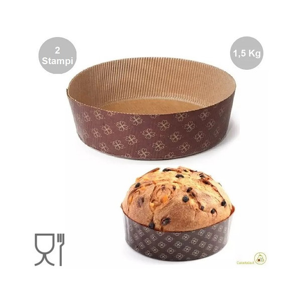 Caratteristiche set 2 stampi panettoni bassi in carta cellulosa calandrata, usa e getta o monouso, da 1,5 Kg: