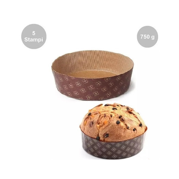 - Set 5 Stampi Panettoni Bassi, stampi pan canasta o stampi panettoni gastronomici in carta cellulosa calandrata, usa e getta o monouso, da 750 g, ad uso professionale