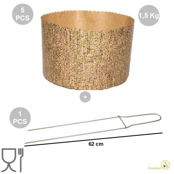 Set spillone da 62 cm in acciaio con 5 stampi panettone alto, in carta cellulosa da 1500 g, è composto da: