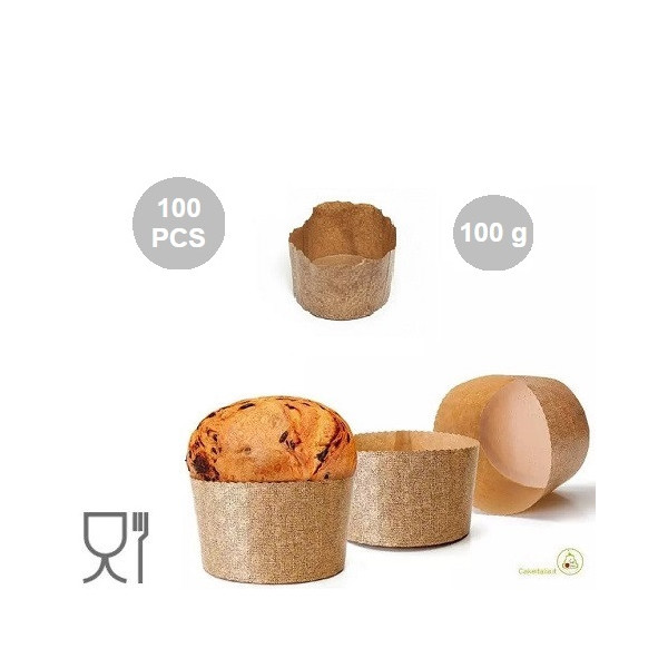 Set 100 stampi panettone artigianale alto, stampi pan canasta o stampi panettoni gastronomici in carta cellulosa usa e getta o monouso per panettoncini da 100 g