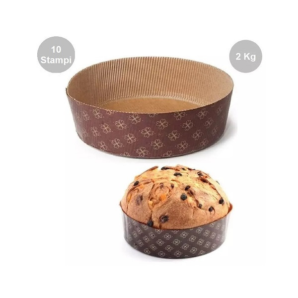 Caratteristiche set 10 stampi panettoni bassi in carta cellulosa calandrata, usa e getta o monouso, da 2 Kg:
