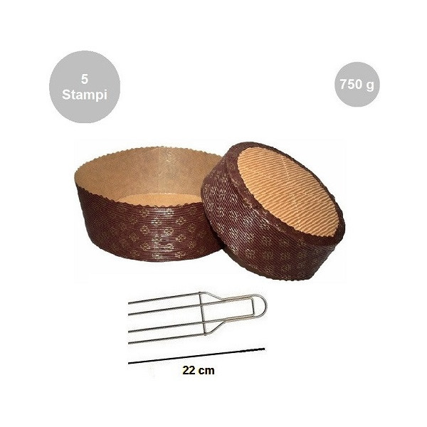 Set spillone 62 cm in acciaio con 5 stampi panettone artigianale alto, stampi canasta o stampi panettoni gastronomici in carta cellulosa usa e getta o monouso da 750 g