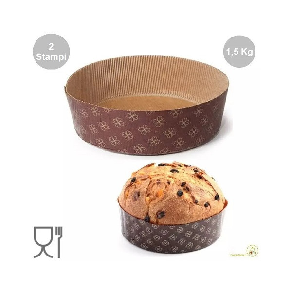 - Set 2 stampi panettoni bassi, stampi canasta o stampi panettoni gastronomici in carta cellulosa calandrata, usa e getta o monouso, da 1500 g / 1,5 Kg, ad uso professionale