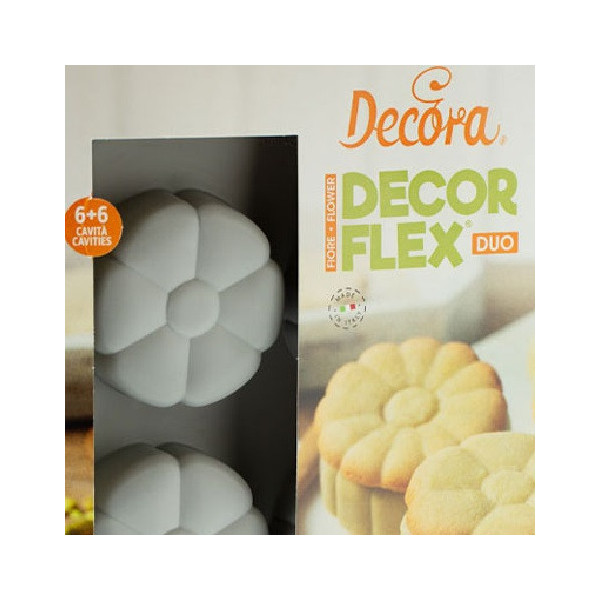 Gli stampi Duo Fiore della linea Decorflex di Decora sono in silicone grigio 100% Platinum, flessibile e antiaderente, possono essere messi direttamente dal forno al frigorifero e viceversa, ideali per uso alimentare, sono adatti a forni elettrici, a gas e microonde, resiste fino ad una temperatura di 230°C.