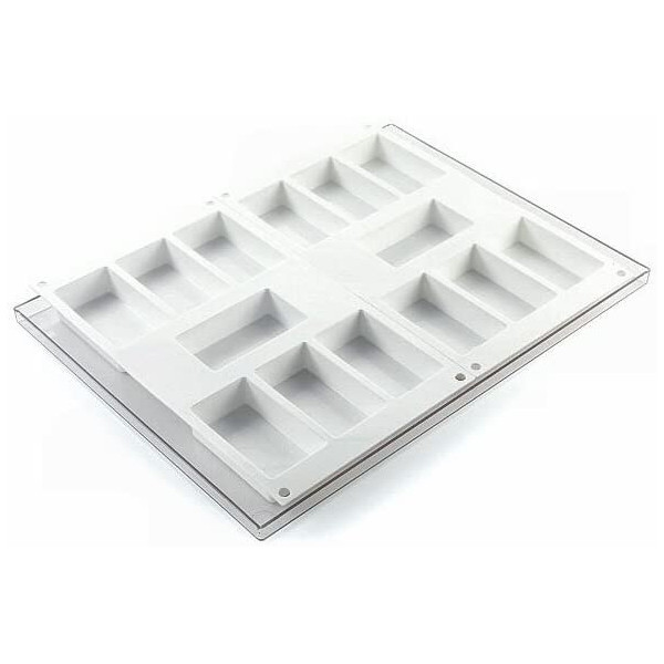Stampo gelati biscotto rettangolare, Bisc 01 Classic, set composto da 1 vassoio 30x40cm con 2 stampi silicone bianco per 14 gelati biscotto classico di 87X48h24 mm da Silikomart.
