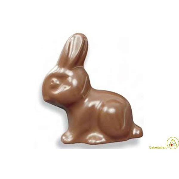 Stampo coniglio o coniglietto di cioccolato da 50 g e 7,6xh7,9 cm o 250 g ed 16,4xh17 cm, in policarbonato rigido per uso professionale, ideale monoporzione di cioccolato per pasqua.