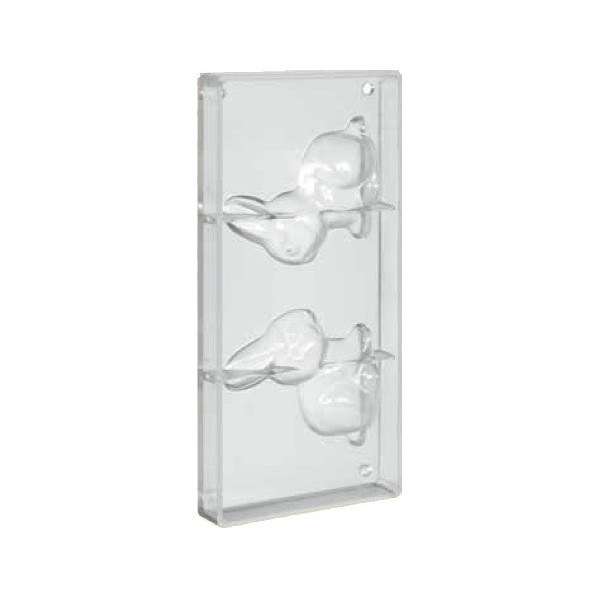 Stampo in policarbonato professionale vi permetterà di realizzare dei coniglietti di cioccolato nel modo più preciso. Ogni placca, accoppiabile, contiene 2 cavità 100 mm x 89 mm