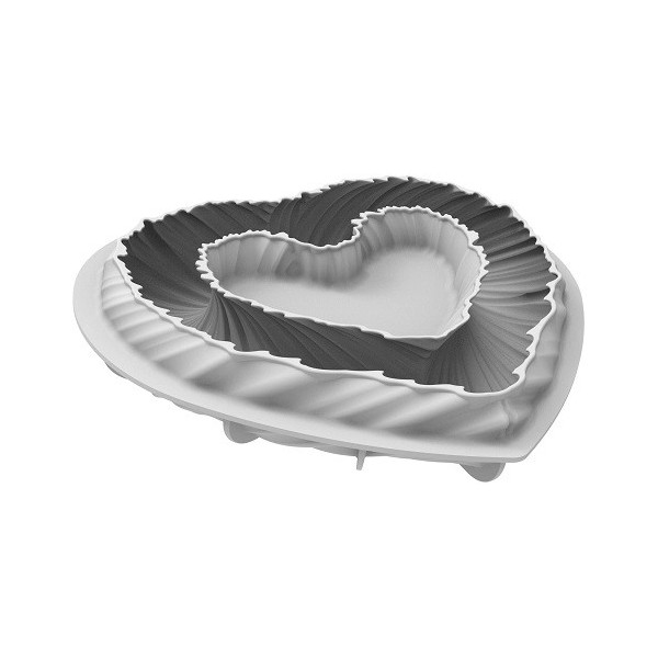 Heartbeat Silikomart: stampo batticuore intrecciato in silicone platinico. Stampo per tortiera forma cuore con decoro intreccio, ad effetto 3D, di dimensioni 250 x 220 x h 52 mm