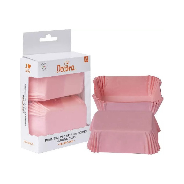 36 Pirottini rosa per mini plum-cake in carta forno antiaderente, resistente fino a 220 °C, lunghi 8 cm, larghi 5 cm, alti 3,2 cm da Decora. Ideali per cuocere e presentare mini plum xake e dolcetti.