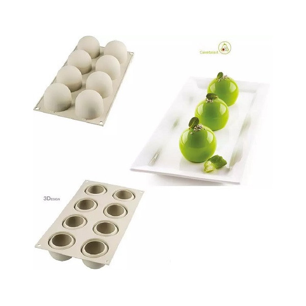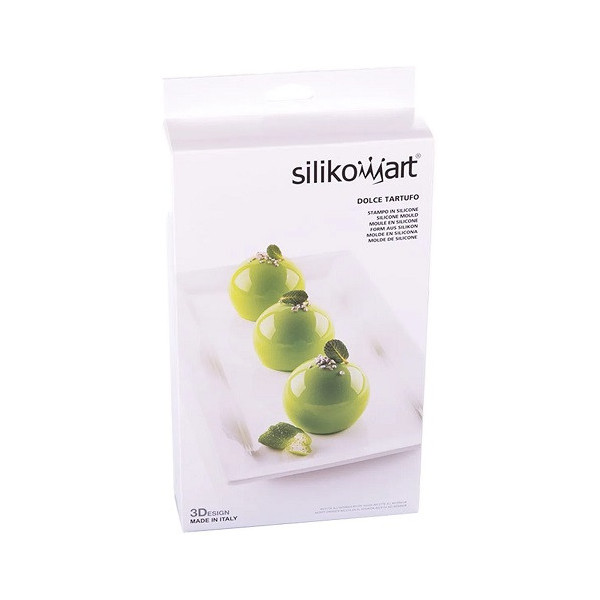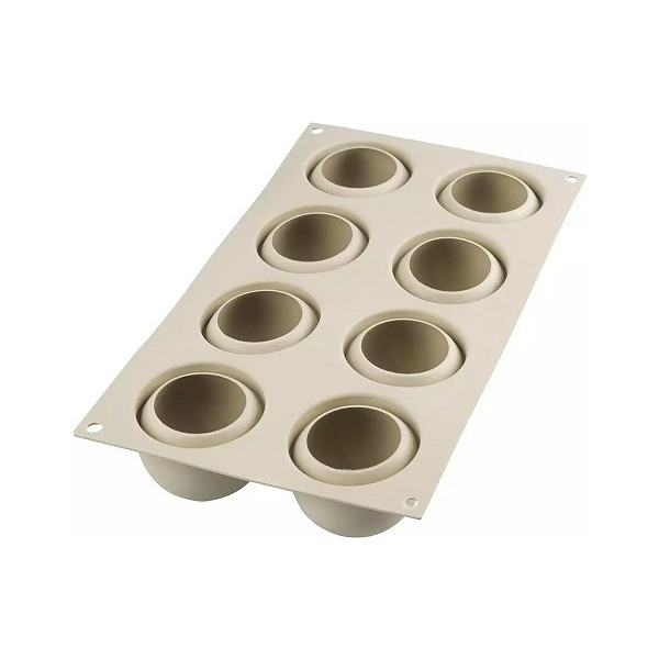 Dolce tartufo ø62 mm o Tartufi da 120 ml è uno stampo in silicone, per 8 semifreddi o dolcetti di diametro 6,2 cm a forma sfera tagliata alla base, dome o cupola ad effetto 3D di Silikomart