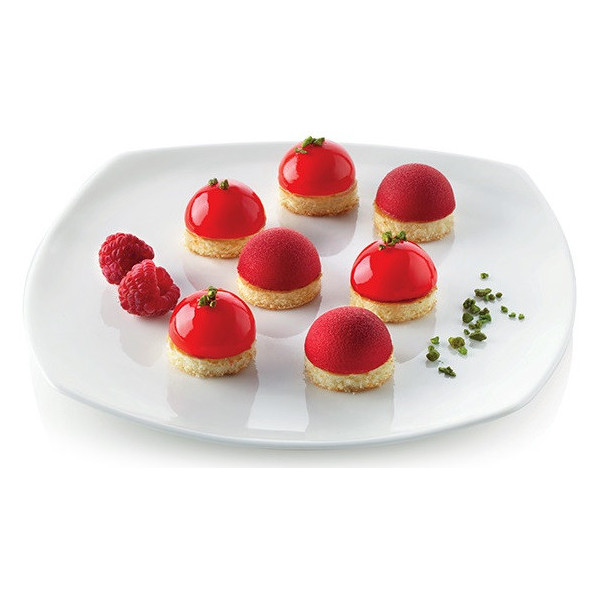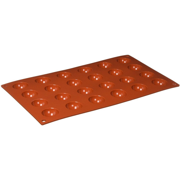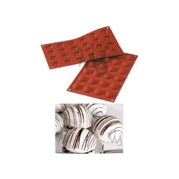 Stampo per la classica forma a semisfera in silicone flessibile e antiaderente realizzato in 100 % silicone liquido da Silikomart. Può essere messo direttamente dal forno al frigorifero e viceversa.