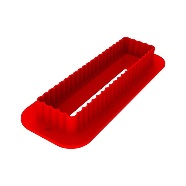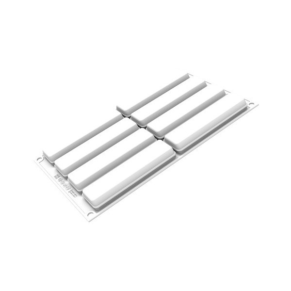 Sweet rectangle 85 Silikomart: stampo silicone bianco con cutter a doppia faccia per inserti e basi, in pasta frolla, per monoporzioni, dolci forma rettangolare 128x33 h 21 mm.