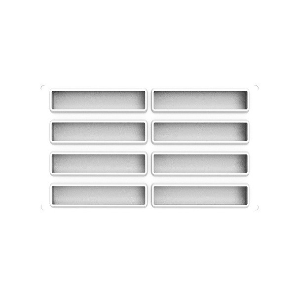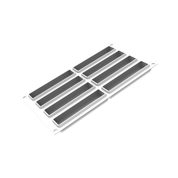 - 1 stampo in silicone bianco, con 8 cavità rettangolari da 12,8x33 mm ed altezza 21 mm e volume di 85 ml,