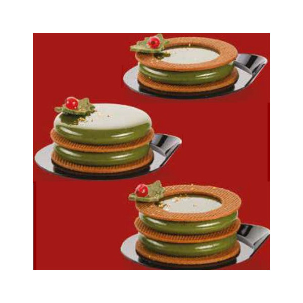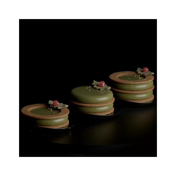 Realizza monoporzioni tonde a più livelli, o tondi a strati, combinando preparazioni o cremosi con lo stampo e la frolla con il cutter.
