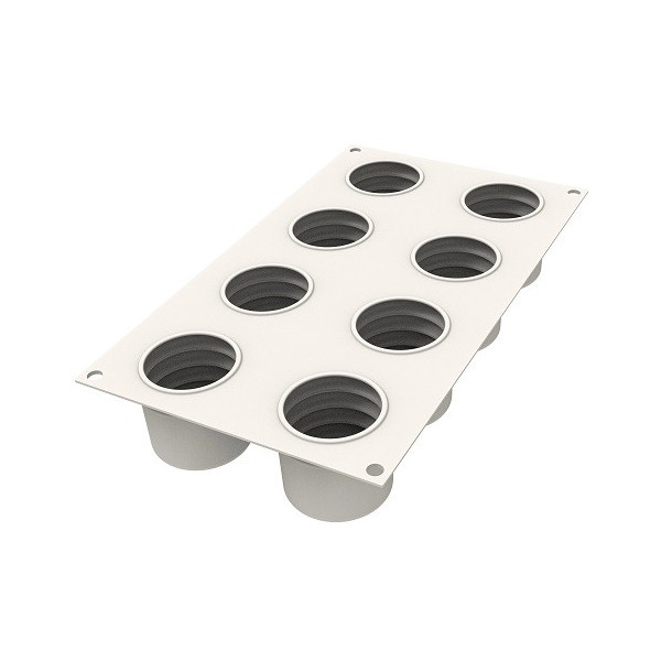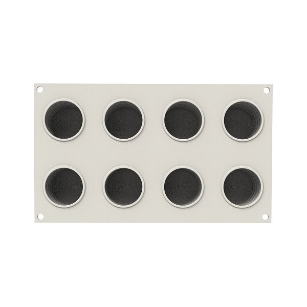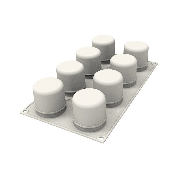 - 1 stampo in silicone grigio, con 8 cavità a forma cilindrica di diametro 55 mm ed altezza 55 mm e volume di 120 ml,