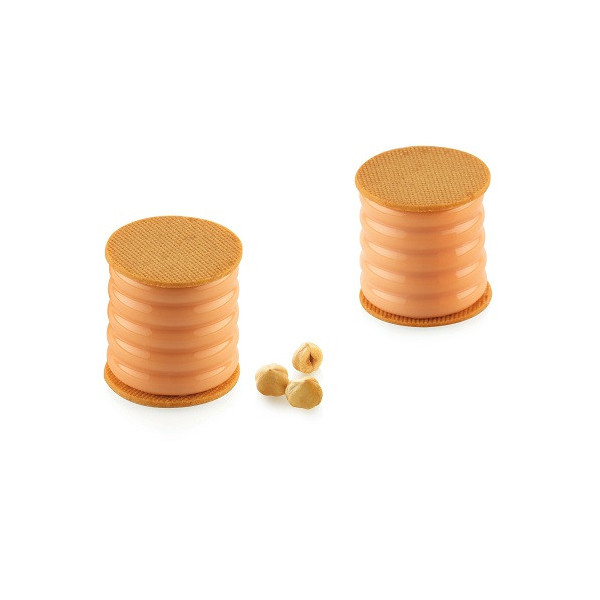 Sweet layers Silikomart, per monoporzioni, dall'aspetto di dolci strati, a forma di cilindri striati ø55 h55 mm.