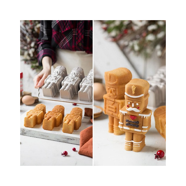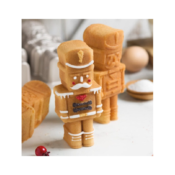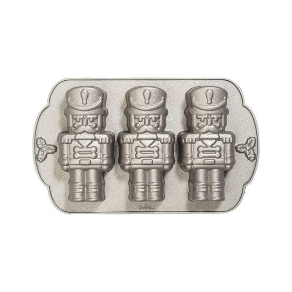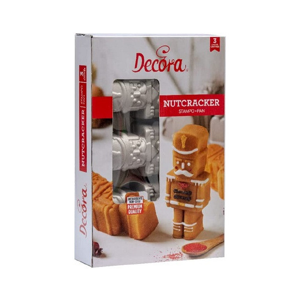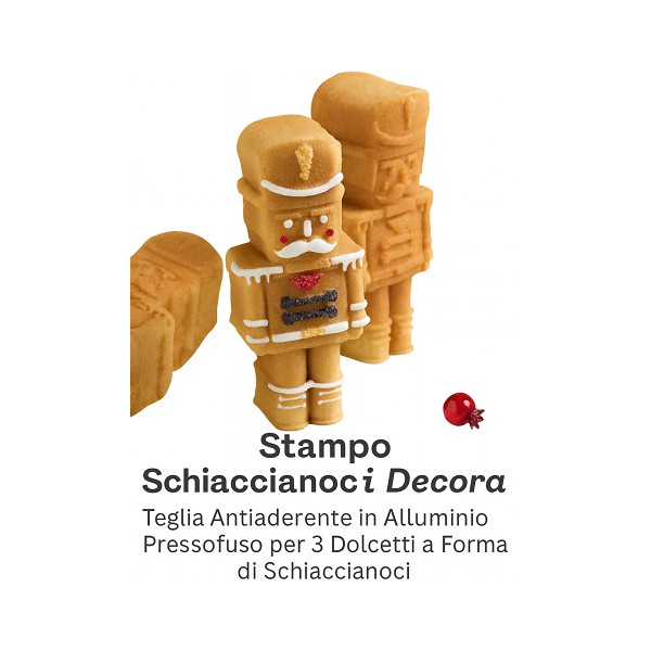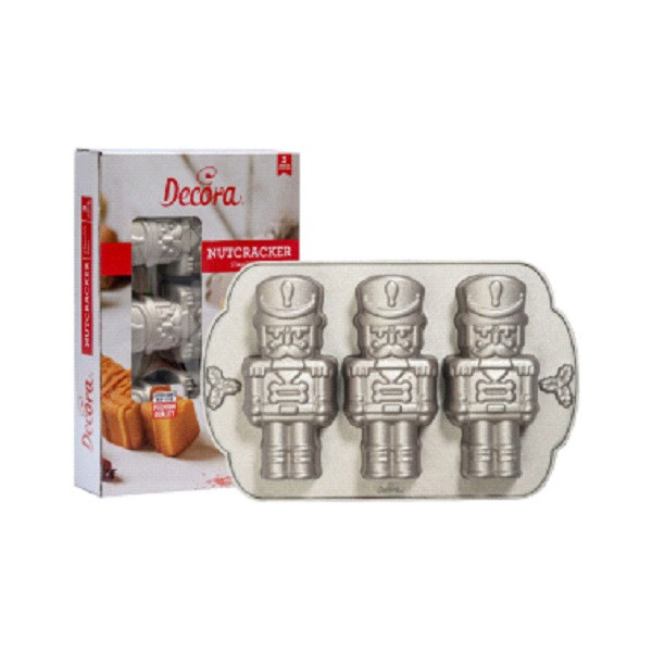 Stampo Schiaccianoci alluminio pressofuso 29 x 18 h 5,8 cm Decora: stampo forno 3 cavità soldato schiaccianoci in alluminio pressofuso di alta qualità per uso intensivo.