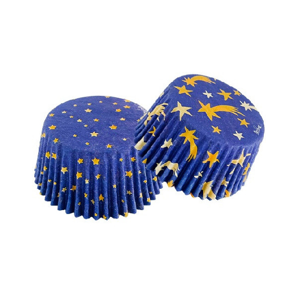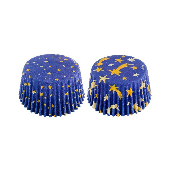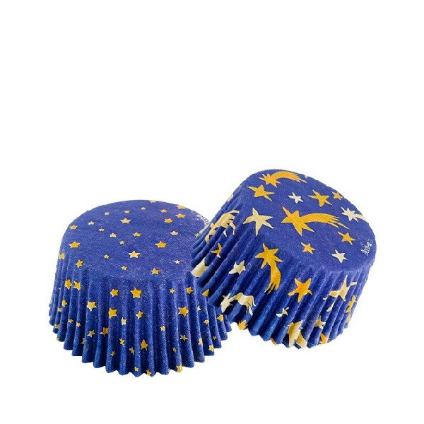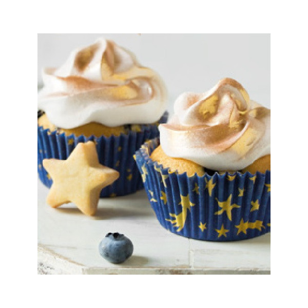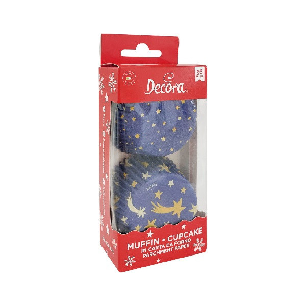 36 Pirottini muffin Stars: carta forno antiaderente con cielo con stelle natalizie in blu e oro, diametro 5 cm, altezza 3,2 cm da Decora. Ideali per cuocere, presentare e regalare dolcetti.