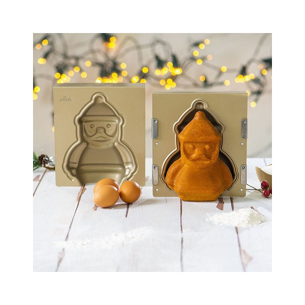 Stampo plumcake Santa Claus Decora: stampo forno forma plumcake in alluminio pressofuso antiaderente di alta qualità con decoro babbo natale su slitta con renne da 27x15xh5,8 cm